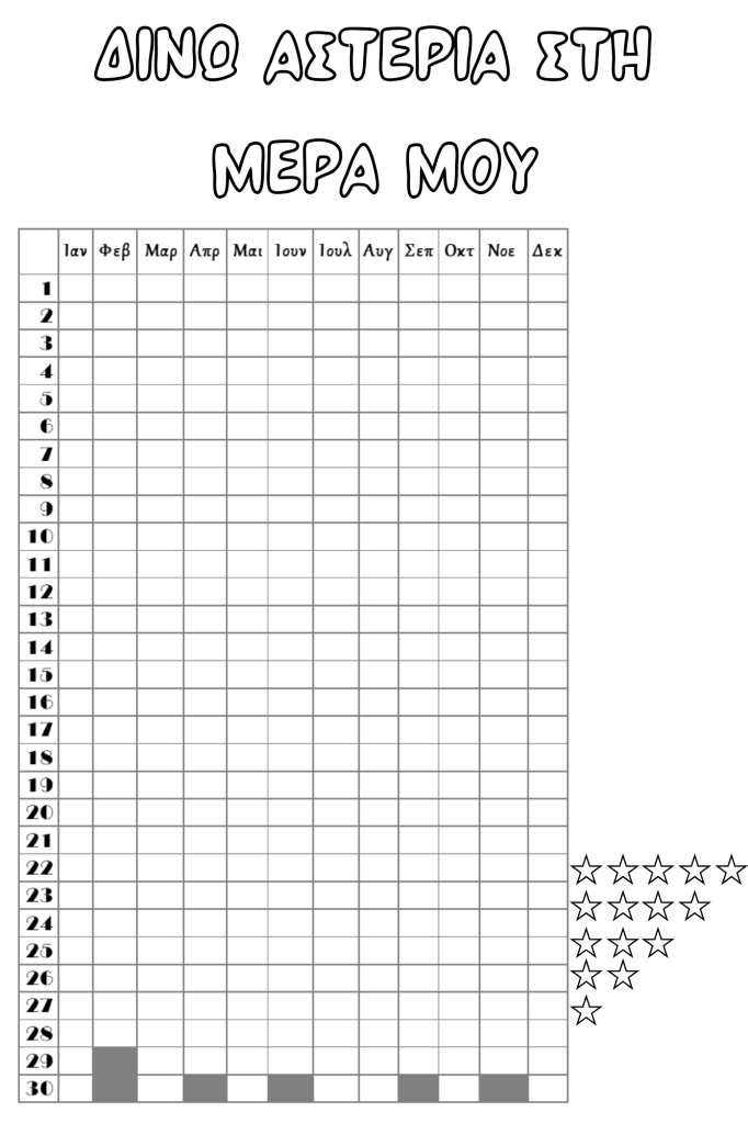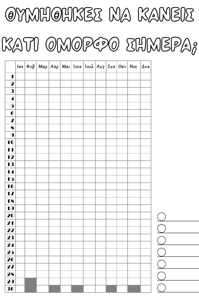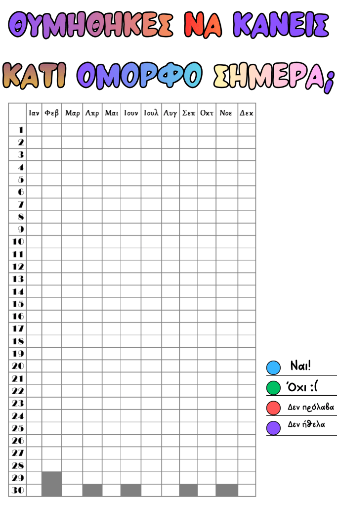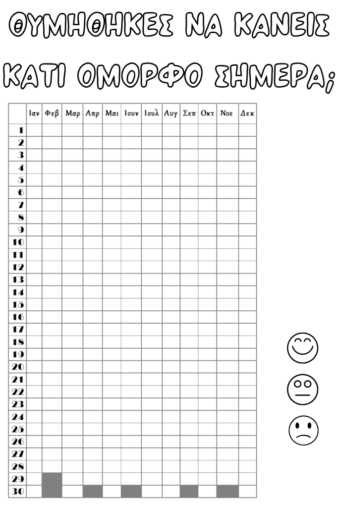 Έφτιαξα λοιπόν τα παρακάτω templates, που μπορείτε να τα κατεβάσετε, να τα εκτυπώσετε, να τα χρωματίσετε και να τα κολλήσετε στο δικό σας Bullet Journal.
