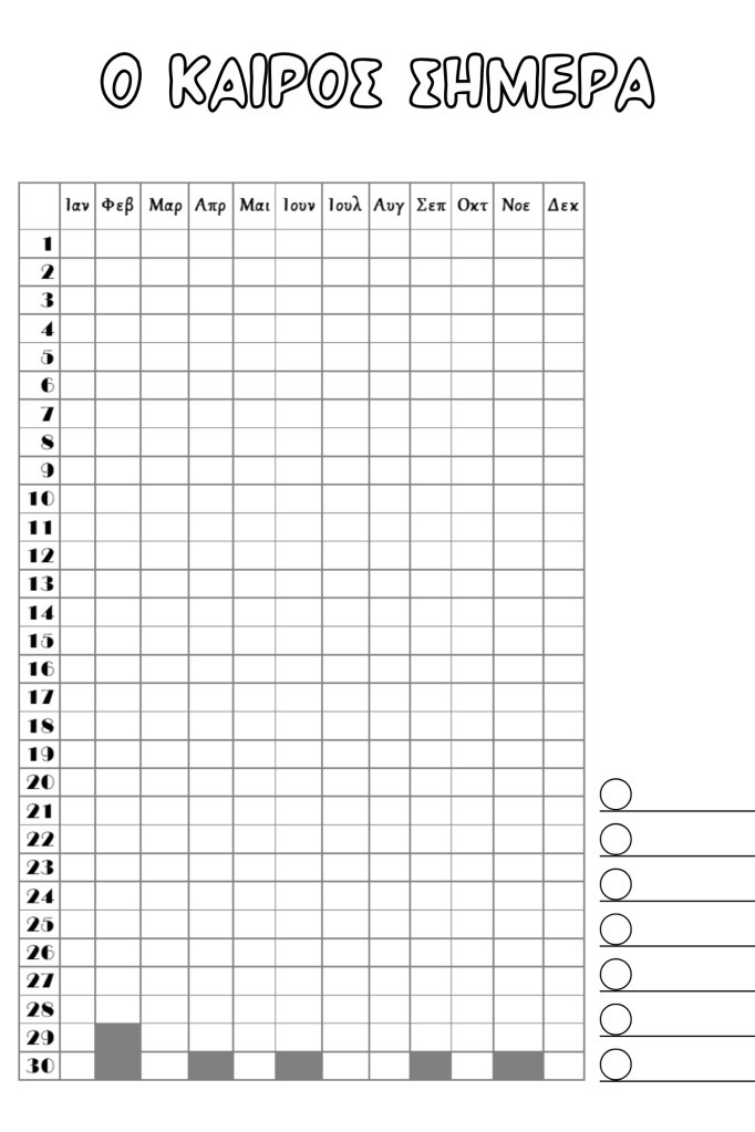 Έφτιαξα και δύο διαφορετικών ειδών υπομνήματα για να μπορέσετε να καταγράψετε μόνοι σας τις κατηγορίες.